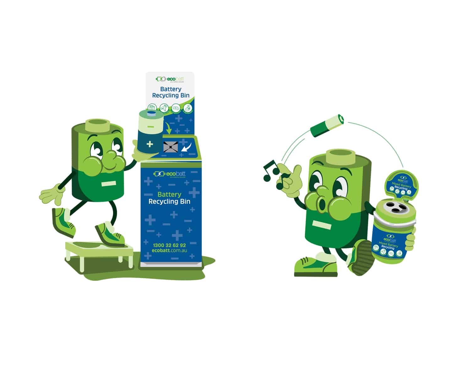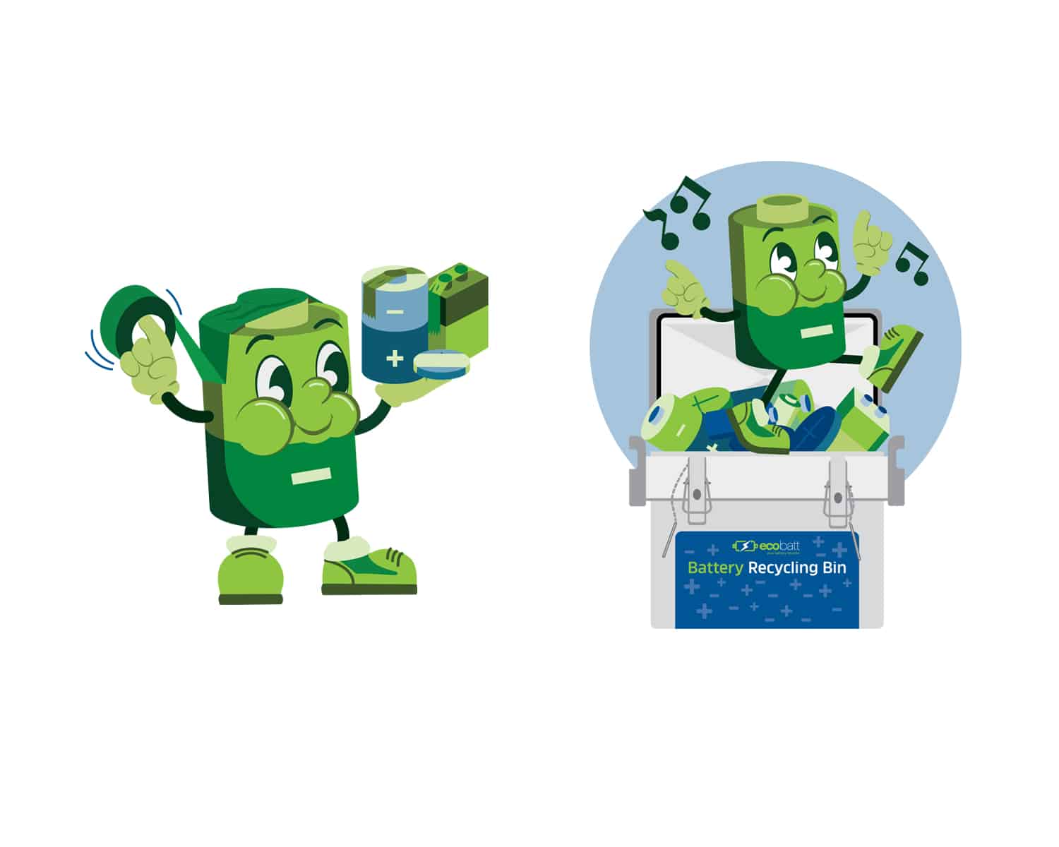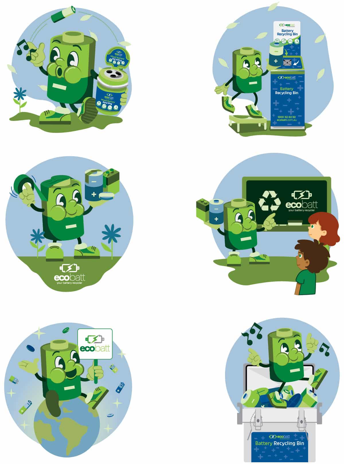 We created this custom character illustration for their brand to capture the importance of education surrounding the responsible recycling of batteries and incorporate a fun character to the EcoBatt Brand.